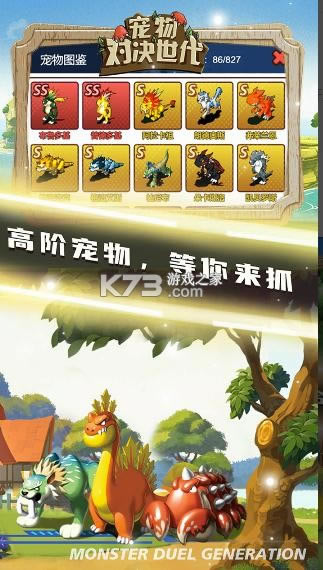 《宠物对决世代》趣味的回合制的游戏,将他们合成和进化开启最出色的冒险故事,高阶的宠物等你来抓,追寻最神秘的身影,选择多种多样化,超过600的技能和800的宠物以及500的地图,离线也能够快速的畅玩。