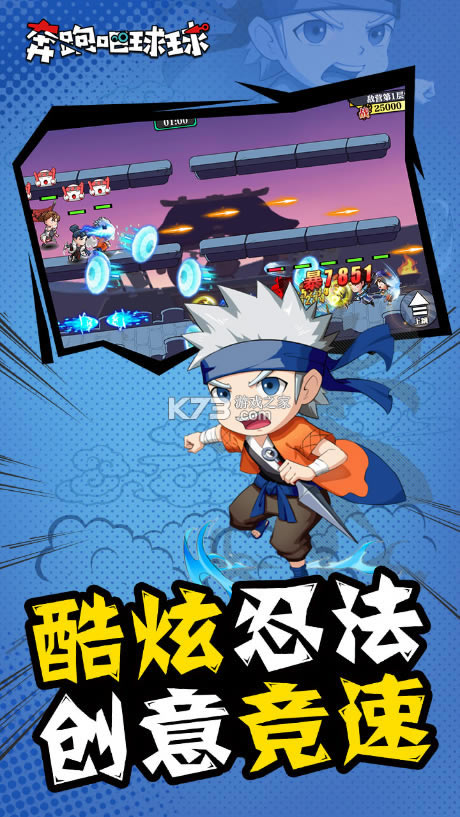 萌趣忍者,花样跑酷,二次元竞速动作手游《奔跑吧球球》来袭,和可爱的忍者小伙伴们一起,使用各种强大忍术奥义,体验速度与激情!