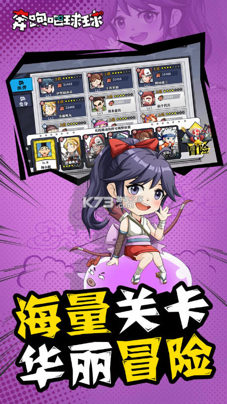 《奔跑吧球球》为你打造创意无限的花样战斗跑酷大世界,各种搞怪敌人,谐趣玩法,很好很欢乐。奔跑、跳跃、发射、忍法出击、奥义必杀、冲破敌阵