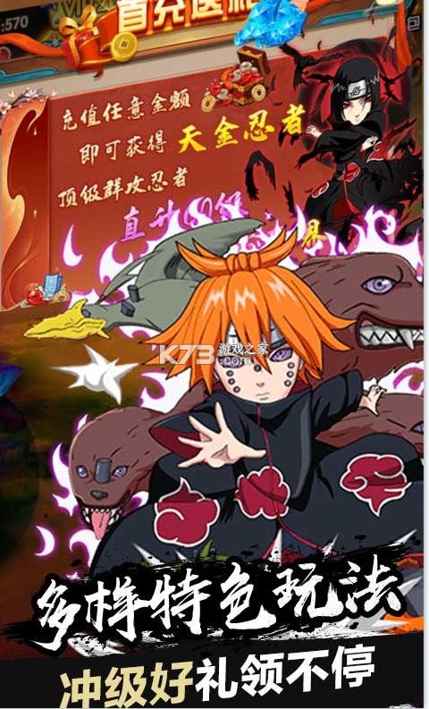 《开心宝贝向前冲2-送GM领真充》经典火影再现,究极大战重燃!.上线就送海量钻石、 百连抽卡,豪华开局福利,尽享极品特权!钻石成长基金,你敢买我敢送,海量钻石等你来拿!爆款忍界商店,一次购买,每日免费领取 !更有欧皇转盘、免费GM商店,每日都能领充值,让你领到爽! 海量超爽福利,助你热血一战!忍界究竟将何去何从,忍界命运由你掌握!