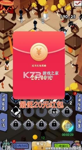 大侠闯江湖红包版是最近人气非常高的江湖武侠题材手机休闲小游戏,只要你能上线登录,就送红包,微信提现秒到账,不需要邀请好友,也不需要做任务,只要你上线登录,就可以秒送。