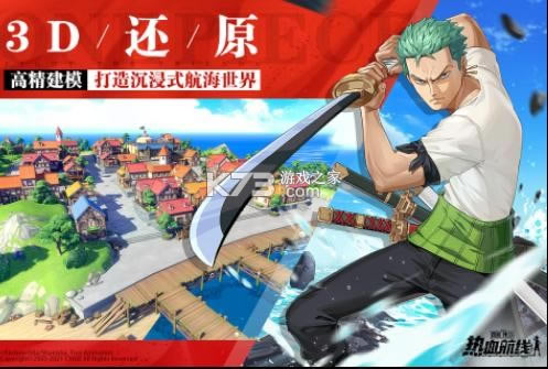 还原度max,精细到每栋房屋,让玩家体验一个真实立体的c!完整海域地图场景、原版声优配音,仿佛裸眼穿越航海王世界,无论是阿拉巴斯坦的漫天黄沙,还是水七都的粼粼波涛,尽在航海王热血航线!