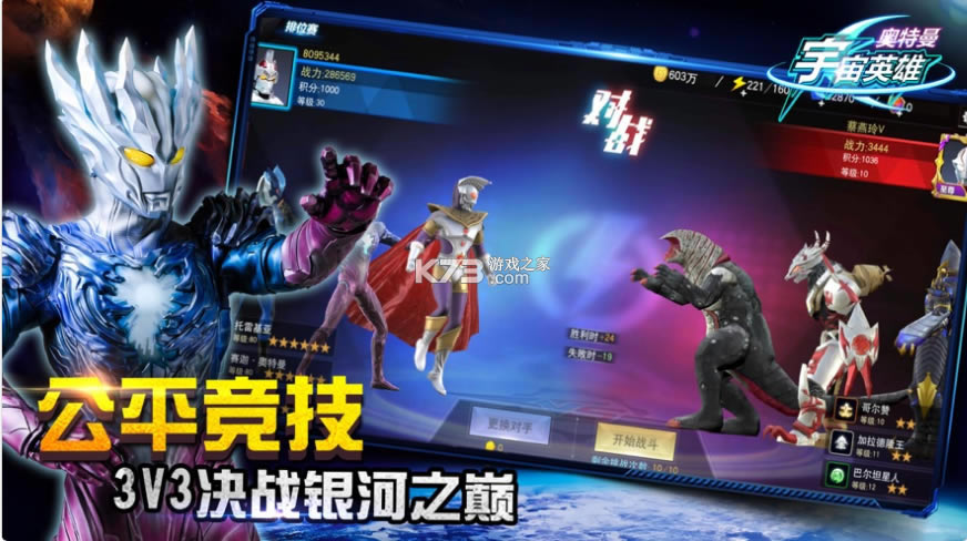 1v1巅峰英雄战,争夺宇宙霸主;3v3荣耀擂台赛,组建最强阵容;
