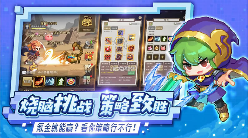 在童年时光,我们都热爱那些风靡大街小巷的经典像素游戏,也都有着成为勇者的梦想!在这里,你可以派出勇者,为了保护家园而义无反顾!在这里,你可以为童年的自己一圆勇者之梦!