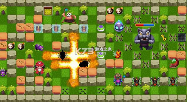《超级炸弹人2020(Super Bomber 2020)》让你重温经典炸弹人的特色冒险玩法,推出全新闯关模式,超级炸弹人2020游戏中你需要灵活走位并且合理的方式炸弹,收集强化道具、金币和钥匙等道具。