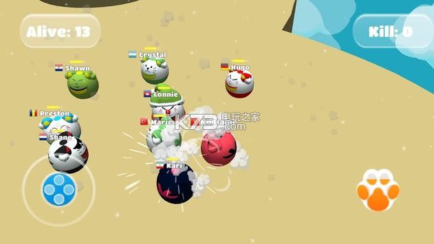 《Cats Fight》操控着可爱的猫咪来进行战斗,在多个场景中,你将选择属于你的猫咪去和其他玩家进行战斗,通过撞击将其他玩家挤下平台,努力成为最后的胜利者吧。