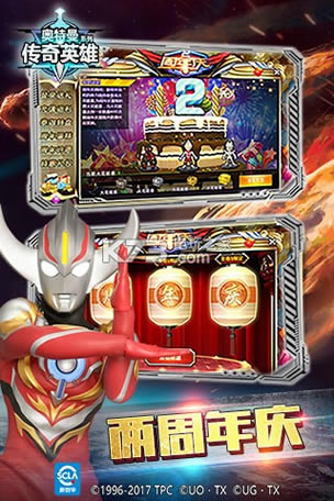 两周年盛大庆典 光之国六弹好礼等你拿 不知不觉,传奇英雄已经和大家走过两年,为了回馈广大玩家长久以来的支持,游戏内将开启光之国两周年特别庆典活动,稀有道具登陆送、累计登陆更有钻石、等离子精魄、传说英雄选择器等豪华奖励等你拿;豪华转盘免费抽,每日均可免费抽取稀有道具,更有泰伽奥特曼等你拿;许下你的两周年心愿赢取传说英雄奖励,第二天就有机会实现哦~;更有周年超值大礼限时购,想拥有泰伽奥特曼的小伙伴可要抓紧机会哦;超值充值返利再度来袭,一定让你觉得物有所值,让你在游戏中越战越强!