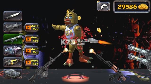 使用飞刀,冲锋枪,火箭发射器,激光枪,火焰喷射器,甚至是坦克来摧毁弗雷迪的角色!释放愤怒并消除愤怒。