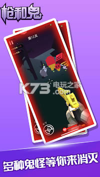 《枪和鬼(Gun And Ghost)》游戏的玩法十分的简单,是款合成射击类的游戏,你将解锁各种强大的武器来挑战新的关卡,成功的消灭所有的怪物。