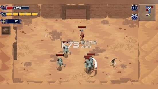 2、经典复古的地牢元素,控制英雄完成探险,击败怪物得到硬币,在商人那里兑换强大的装备;