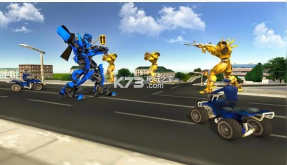 一款机器人动作游戏,玩家能够自由变换成机器人、汽车、摩托车等,自由在城市中疾驰,能够享受激烈的机器人对战,逼真的游戏战斗!