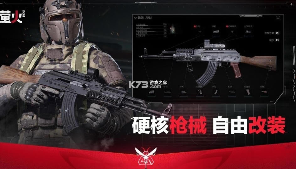 《萤火突击》遵循“高风险高回报”的原则,一开始进入战场前,玩家可以选择自己携带的初始装备,而且能对装备进行改装升级,投入的越大,进入游戏后的初始优势就越大。在战场之上,玩家需要搜集物资或者从他人手中直接掠夺,只要能成功撤离战场,就能将游戏内获得的物资,全部带出游戏,包括武器改装材料、药品、装备等。