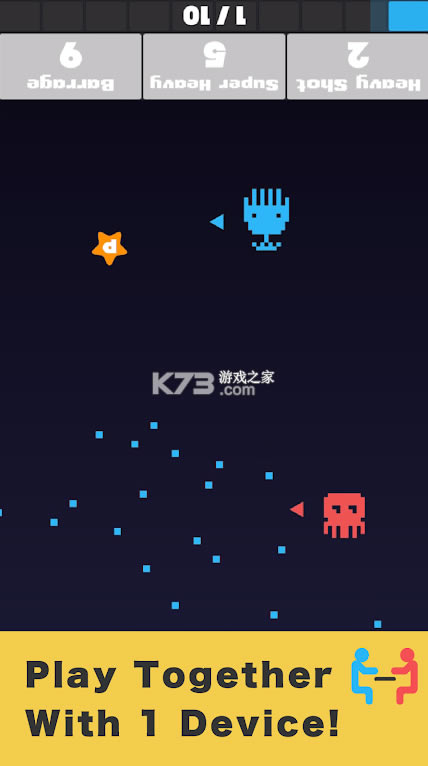 《星际射击vs(Star Shoot VS)》是一款像素风太空飞行射击游戏,简单的游戏内容和画面,让所有的玩家都可以在游戏中自由的玩耍,同时,这款游戏还可以在线上进行对战,也可以通过蓝牙进行在线对战,增加了游戏的乐趣。
