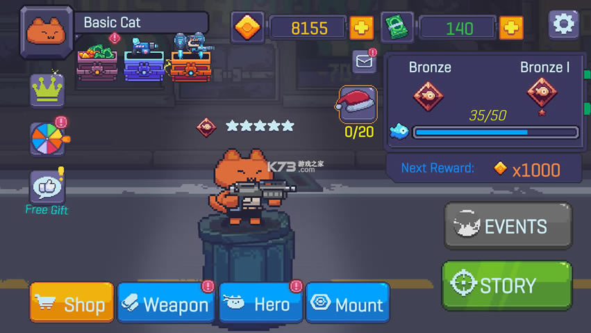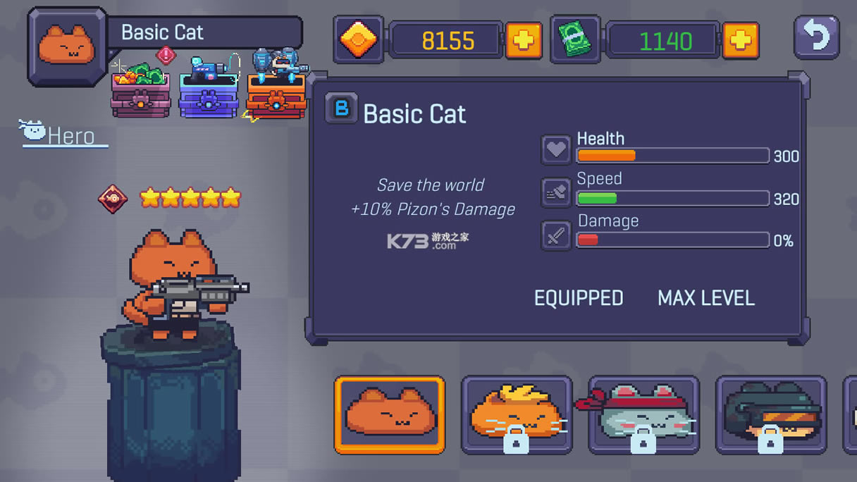 收集大量的动力枪,猫英雄和支援设备以克服挑战。