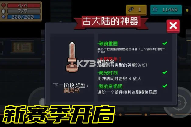 《元气骑士古大陆神器版》是玩家们期待了非常久的2021暑期版本,玩家们将在游戏中体验全新的赛季玩法古大陆神器,在这个玩法中武器将被分为剑、弓、法杖、而且每个武器将分为3个部件,玩家需要为集齐各种部件而努力。