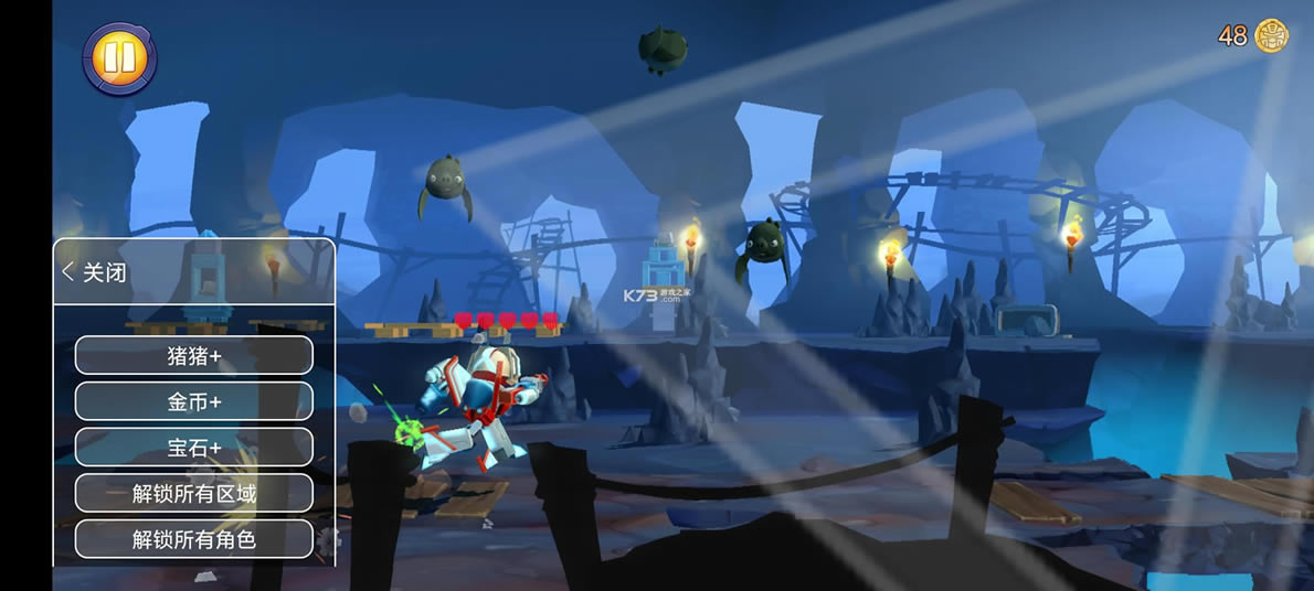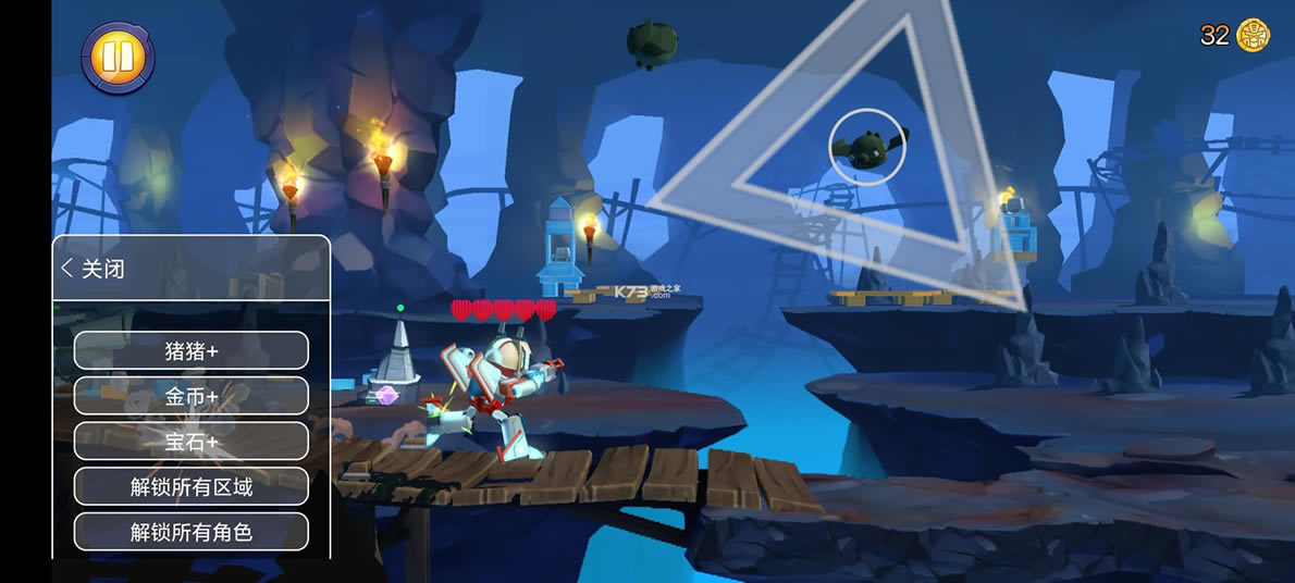 之所以要快速击杀绿猪,主要是绿猪会攻击我们,角色头顶会有5颗青色的爱心,其实这个就是变形金刚的生命值,一旦受到伤害,爱心会减少,爱心全部消耗完了,通关就会失败,所以玩家要时刻注意变形金刚生命值,保持健康的血量,才能最终通关。