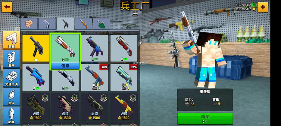 游戏中有多种像素角色可供选择,商店里还有蝙蝠、AK等武器,可以用赚到的钱购买。