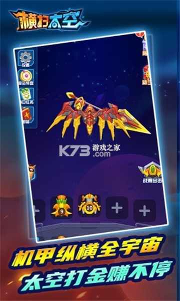 横扫太空是一款建造升级炮台,横扫太空的挂机塔防游戏。打造、布置和升级炮台,武装你的太空母舰,进行一场场热血沸腾的战役。横扫太空游戏里共有数百场战役,几十个星系,多重宇宙等你去探索,一起来横扫太空吧!