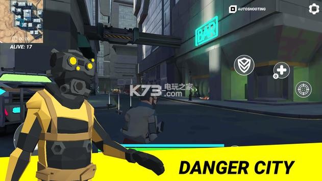 《2077赛博朋克大逃杀》来到赛博朋克世界的小岛上展开生存大逃杀挑战,2077赛博朋克大逃杀测试版延续射击吃鸡玩法,提供了各种不同的科技武器,灵活操作精准射击来击败全部对手。