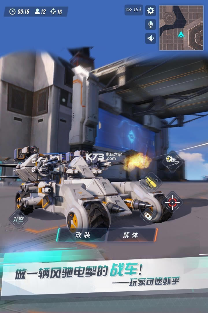 找到更多的零件,你将获得近乎无限的创作自由。速度不够快?换上高速轮。不够坚固?加装护盾。烟雾器+隐身装置,让你一秒消失在敌人眼皮底下。当然,从来没有无限强大的机甲,天才们总会找到平衡。你想创造什么呢?超级战车、喷射飞行器、还是巨型机甲战士?或者,全都想要?