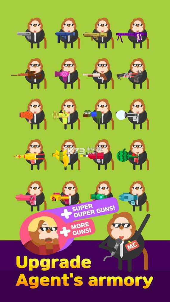 《猴子特工》你是一个猴子警探,在王国中轻松的来体验各种趣味性的内容,快速的找出所有的猴子,精准的来打击,利用射击的技巧来完成,千万不要伤害其他的人。