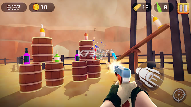 《我射瓶子贼六2020》是个西部牛仔风格射击游戏,玩家可以拿起手枪来挑战射瓶子,我射瓶子贼六2020手游会根据射中的瓶子树来算积分,并且还能解锁各种酷炫的枪械哦。