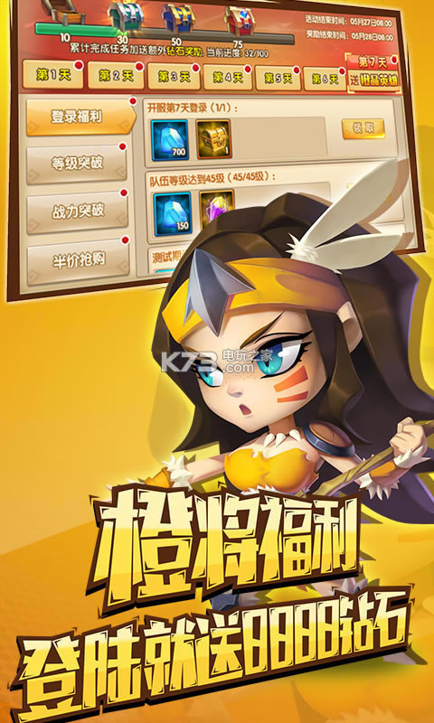 7、七日狂欢:海量钻石、海量金币、海量体力、海量精力等;