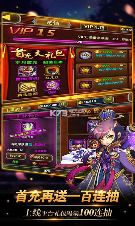 ★上线即送VIP15、19999元宝、10亿铜钱,免费享受VIP特权!