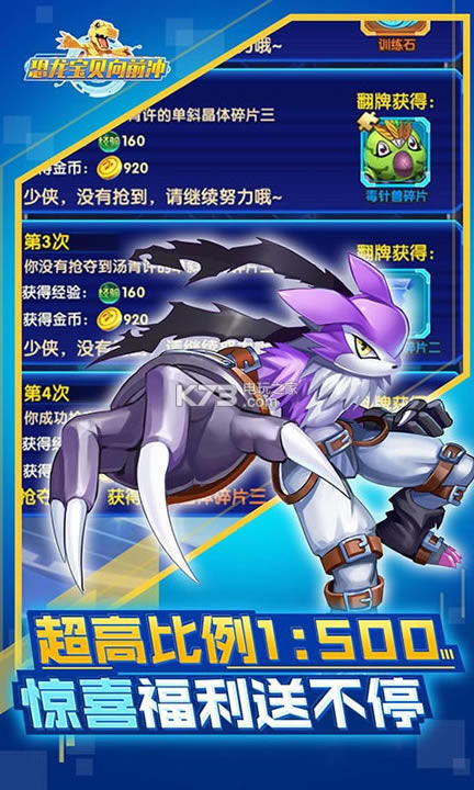 单日累充500元:橙色数码兽印宝箱×1,精力丹×30,觉醒石×300