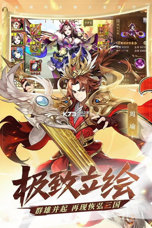 业内知名画师倾力塑造,成就三国颜值巅峰!威武霸气的曹操,肤白貌美的小乔,英姿飒爽的赵云……300余名极具特色的三国武将,均完美还原成了16岁的少年,他们的每一个表情、动作都栩栩如生,与众不同!极致的立绘,精致的场景,将给你带来全新的视觉体验!