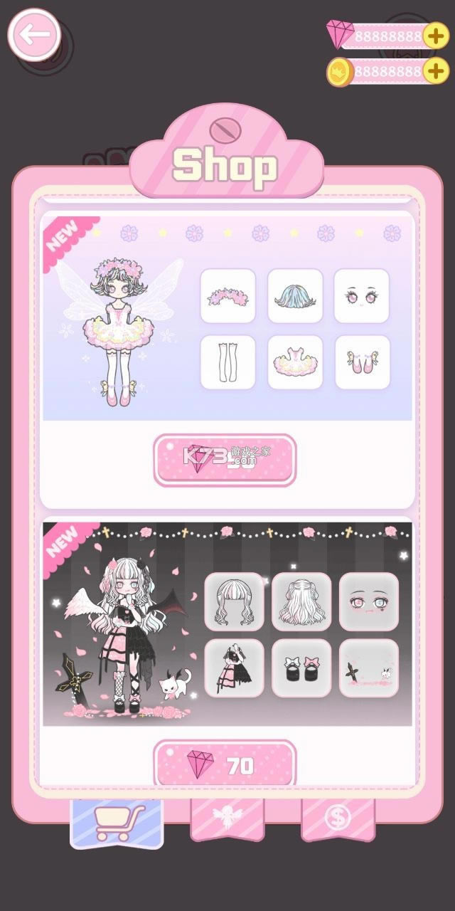 有着丰富的服装,五官,妆容,发色,场景等内容选择,自由度很高,完全自由DIY自己喜欢的外型,打造专属时尚娃娃。