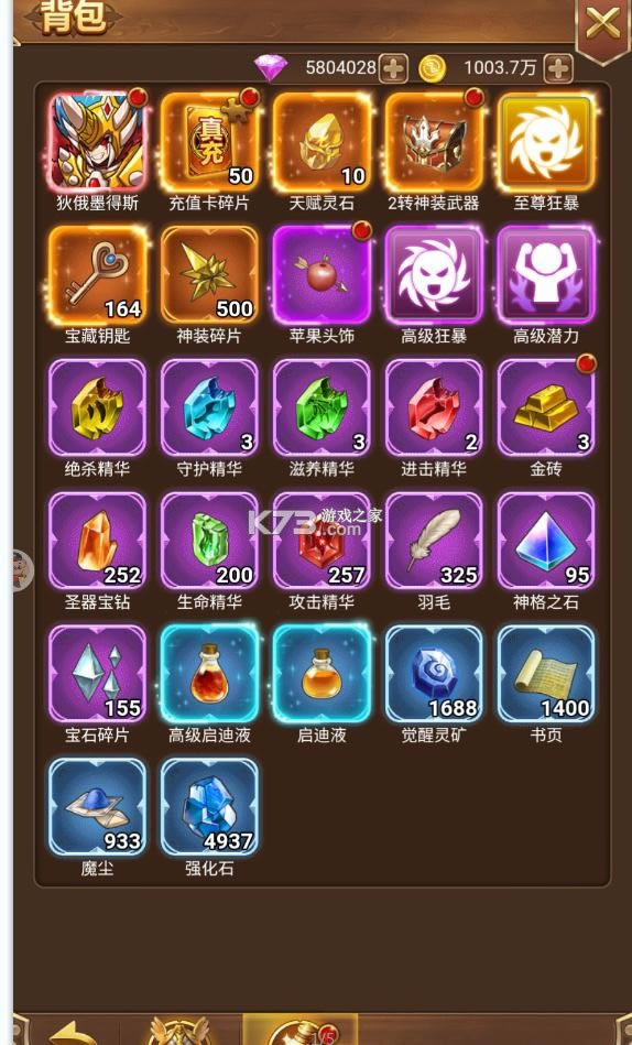新手礼包:强化石*10,羽毛*10,金砖*1