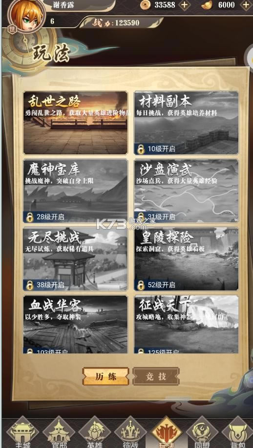 挑战不同的领地可以见识到更多的武将,有一些是可以招募获得的!