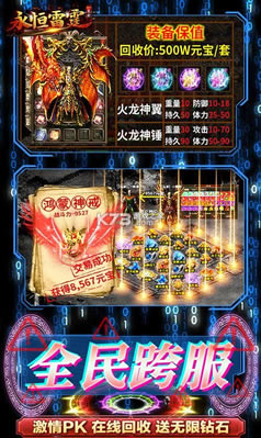 《永恒雷霆》是一款超级复古的传奇手游,该游戏可以让玩家在游戏中自由选择自己的职业,也可以根据自己的喜好,给自己的英雄提供各种类型的装备,而且装备可以快速的回收,获得大量的金钱,人物非常华丽的技术和特效,给人一种视觉上的享受。