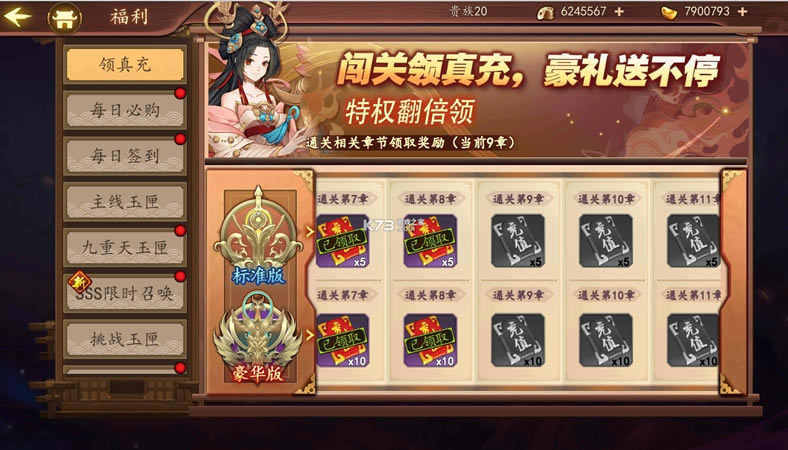 特权礼包:初级灵力丹*500、生肖精华*10、SS伙伴自选*1