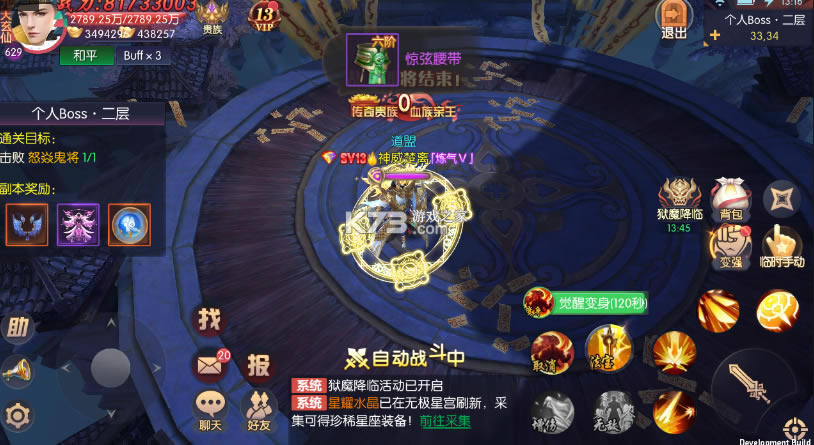 1. 海量的副本关卡,每个关卡都有更多强大的boss,每一层的冒险挑战都能收获更多极品装备。
