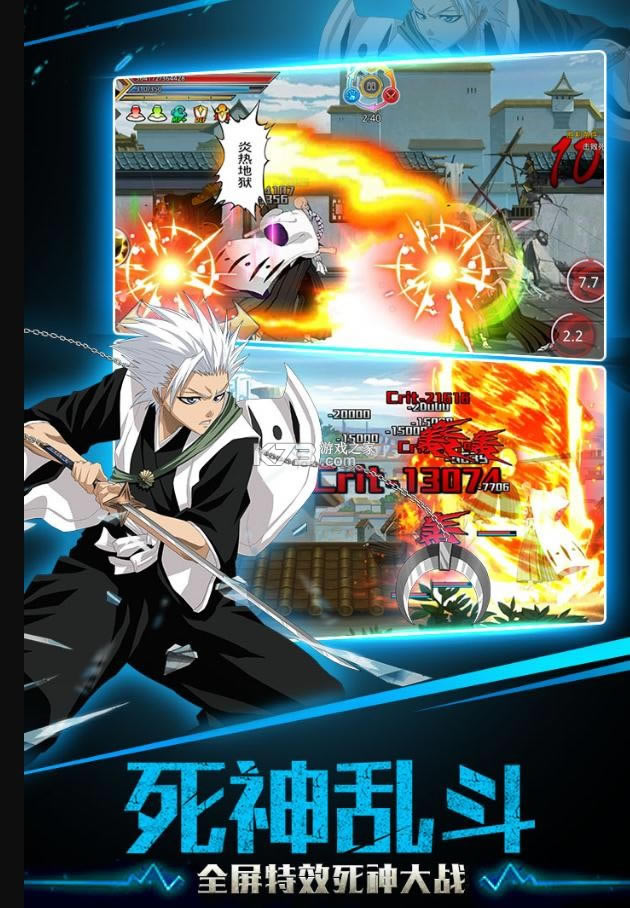 3、死神·格斗 拳皇式的横版格斗,外加死神独有的“瞬闪”和“卍解”技能,带来绝对华丽热血的死神大战
