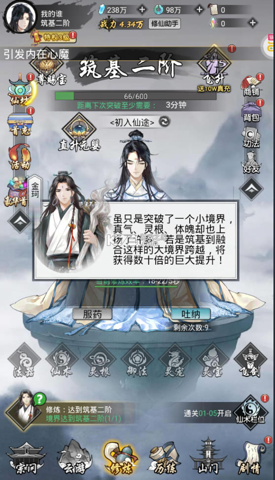 3、以仙之名最新版游戏丰富的功法自由学习,感受不同功法给你带来的不同效果