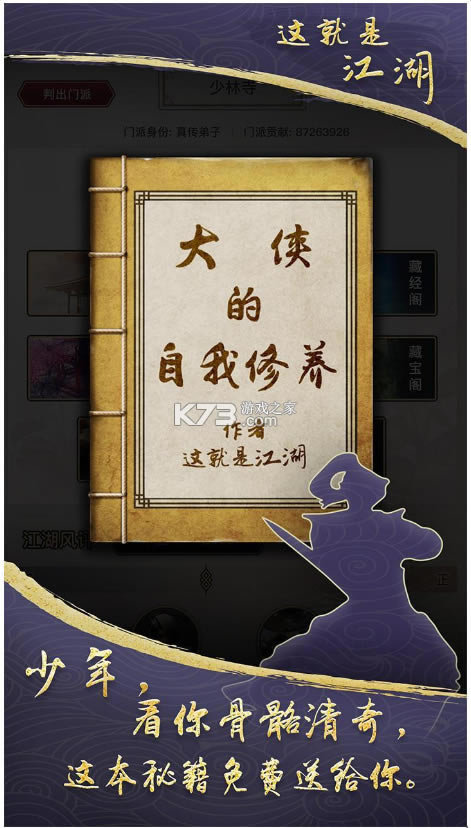 《这就是江湖》不一样的人生从这里开始了,加入到千百门派中,可一探究竟必定获得更多的收获,开放式的文学的武侠的玩法,开启全新的江湖的旅程,增添了很多的全新的效果,学习十八般武艺。