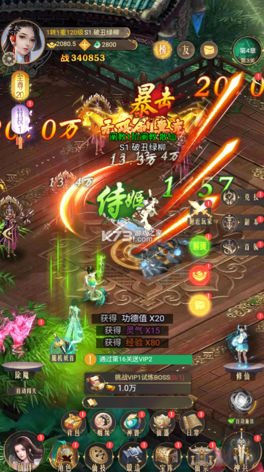 不用多说,这仙侠是我今年玩过最好玩的仙侠,真正的好玩不氪,无限元宝,无限铜钱都是免费送的,然后游戏内一大堆元宝寻宝,这美滋滋,啥仙器、仙童都能寻到,直接甩其他仙侠不知道几条街了,而且还有刷充神器,能刷很多东西,总的来说就是大赞