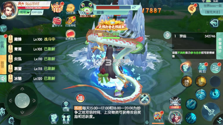 支持跨服战斗冒险,大量的副本关卡,支持组队挑战冒险战斗!
