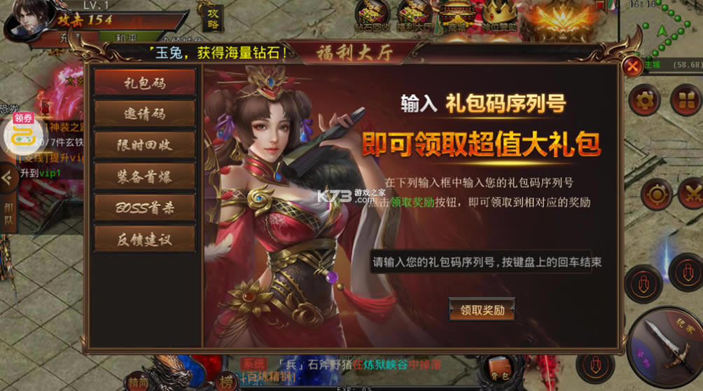 游戏可以通过礼包码免费的领取到游戏的神器装备,每日的登录记录就可以兑换超多的元宝数量,自由的购买商城的精美时装,最新的翅膀特效带来更多炫酷的战斗场景,游戏的技能都可以通过玩家的等级免费进行领取,更高的战斗能力才可以开放额外的游戏挑战副本