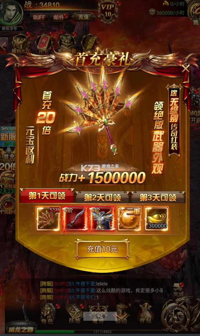 ★首冲最高20倍返利,功能特权开启统统送真充卡,元宝无限送!