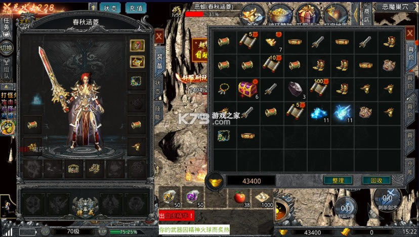 开放的世界大地图,野外自由的PK战斗,攻击的手段也是花样百出,为玩家带来了新的热血传奇玩法;