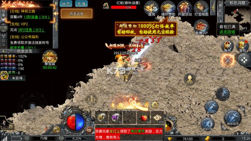 全服打宝概率提升100%!装备不用了还能回收,海量元宝秒到账,绝对良心!