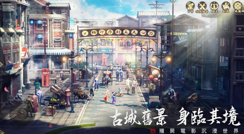 《道士出观》为了让各位道长大人可以沉浸在古色古香的奇幻世界,塑造了百十个不同的建筑场景,让大家在跑图的过程中可以领略当时时代的风土人情,获得感官上的新体验!故事的开始,是毛小方等人看天下大乱,于是选用祖宗之秘法回溯时光,回到过去只为封印后来的僵尸之王——将臣!