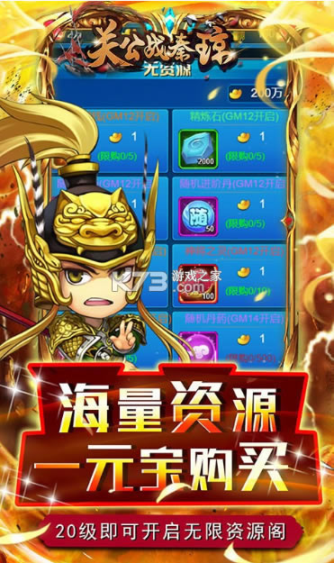 4.20级即可开启无限资源阁!海量资源一元宝购买