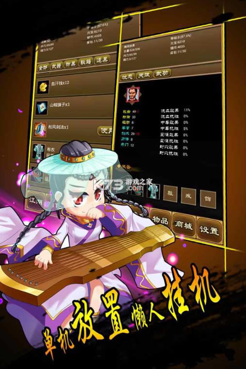 水墨武侠画风,原汁原味还原守卫襄阳、论剑华山、奇遇无量洞等经典武侠情节,玩家化身一代掌门,招募弟子组建门派征战江湖。