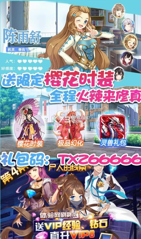1、与百位靓丽校花双修升级,live2d看板娘全天甜蜜互动,亲密约会获取女神心动相册。