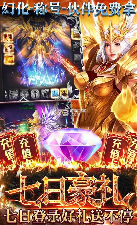 7.充值比例1:10000!上线送VIP24(满V)送绝版称号卡*1、创角GM大礼包,送坐骑满阶大礼包